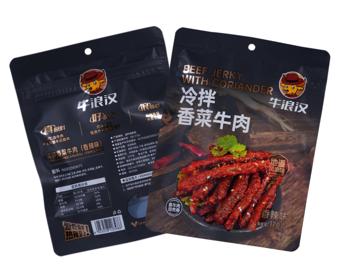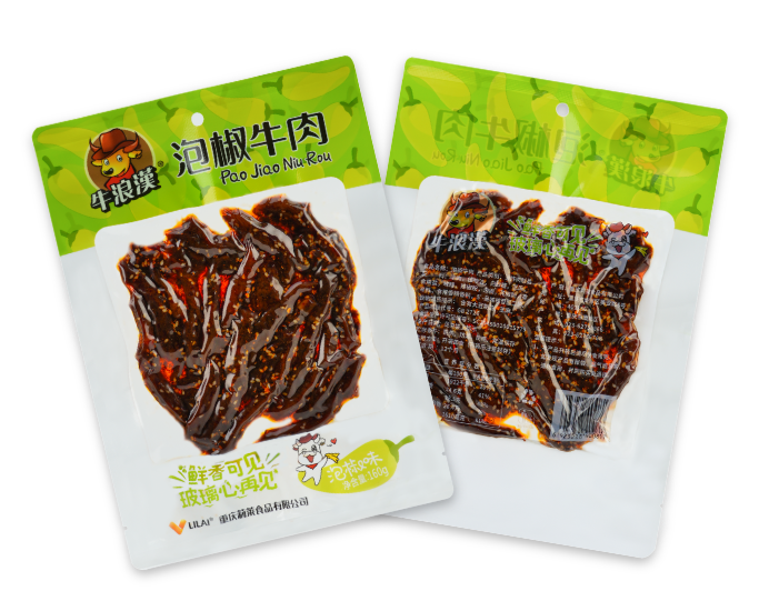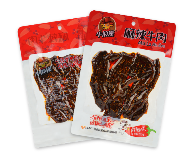 产品中心 安格斯薄脆系列 牛肉干系列 灯影牛肉丝系列 油制牛肉系列 手撕/风干牛肉系列 酱卤牛肉系列 颗颗豆腐香干系列 预制菜系列 文旅系列 随身袋系列 礼袋系列 礼盒系列 安格斯薄脆系列 牛肉干系列 灯影牛肉丝系列 油制牛肉系列 手撕/风干牛肉系列 酱卤牛肉系列 颗颗豆腐香干系列 预制菜系列 文旅系列 随身袋系列 礼袋系列 礼盒系列 Beef in oil series 油制牛肉系列 牛浪汉冷拌花生牛肉(香辣味) 规格:45克/58克/80克/170克产品特点:严选草原牛肉,搭配豫花大花生。酥脆与劲道,双重口感在齿间碰撞;花生香与牛肉香,双重风味在舌尖共舞。佐以天然香辛料,老师傅匠心秘制,浓郁的麻辣鲜香,每一口都是大满足。独立小包装锁住鲜香,方便携带。即拆即食,随时随地乐享美味更自在。 冷拌香菜牛肉(香辣味) 规格:170克产品特点:严选草原牛肉,搭配清新香菜。浓郁肉香与香菜独特清香,在舌尖交织共舞,双重风味层层绽放。佐以天然香辛料,老师傅匠心秘制,地道川渝味创新迭代,一口入魂,欲罢不能。独立小包装锁住鲜香,便携无忧。即拆即食,随时随地,美味随心畅享。 冷拌香菜牛肉(香辣味) 规格:170克产品特点:严选草原牛肉,搭配清新香菜。浓郁肉香与香菜独特清香,在舌尖交织共舞,双重风味层层绽放。佐以天然香辛料,老师傅匠心秘制,地道川渝味创新迭代,一口入魂,欲罢不能。独立小包装锁住鲜香,便携无忧。即拆即食,随时随地,美味随心畅享。 牛浪汉麻辣牛肉 规格:50克/60克/120克/160克/200克产品特点:严选草原牛肉,甄选天然香辛料,传承秘制配方,花椒辣椒精准配比。卤香透骨,肉质紧实弹牙,麻辣如烈火灼喉,鲜香似浪潮拍舌,嚼劲十足带感,一口上头,停不下来的江湖瘾!规格齐全,一人独飒众欢皆宜。便携包装,开袋即引味蕾风暴;佐酒追剧,瞬间点燃酣畅江湖。 牛浪汉泡椒牛肉 规格:60克/160克产品特点:严选草原牛肉,甄选天然香辛料,传承秘制配方,泡椒酸辣赋能。浓香牛肉裹挟泡椒的鲜爽,酸辣激荡,椒香萦绕,紧实肉质在齿间爆汁弹跳,开胃解腻,一口唤醒倦怠味蕾!多规格满足馋瘾需求。便携包装,酸辣随时引爆;佐饭下酒,酸辣暴击酣畅淋漓。 牛浪汉泡椒牛肉 规格:60克/160克产品特点:严选草原牛肉,甄选天然香辛料,传承秘制配方,泡椒酸辣赋能。浓香牛肉裹挟泡椒的鲜爽,酸辣激荡,椒香萦绕,紧实肉质在齿间爆汁弹跳,开胃解腻,一口唤醒倦怠味蕾!多规格满足馋瘾需求。便携包装,酸辣随时引爆;佐饭下酒,酸辣暴击酣畅淋漓。 牛浪汉藤椒牛肉 规格:50克/60克产品特点:严选草原牛肉,甄选天然香辛料,传承秘制配方,藤椒鲜麻点睛。肉质紧实弹韧,卤香打底,麻而不呛,鲜香层层递进,一口坠入川渝秘境,舌尖跳舞,欲罢不能!精致包装锁住鲜麻。开袋即引味蕾颤栗;独享众乐,麻香上头不停箸。 牛浪汉孜然牛肉 规格:50克/60克产品特点:严选草原牛肉,甄选天然香辛料,传承秘制配方,优质孜然点睛。肉质紧实耐嚼,纤维丝丝分明,炙烤般的孜然香扑鼻迸发,裹挟卤香在齿间热烈起舞,越嚼越香,异域风情欲罢不能。多规格便携易带。密封锁住旷野香气;即拆即食,每一口都是享受。 牛浪汉孜然牛肉 规格:50克/60克产品特点:严选草原牛肉,甄选天然香辛料,传承秘制配方,优质孜然点睛。肉质紧实耐嚼,纤维丝丝分明,炙烤般的孜然香扑鼻迸发,裹挟卤香在齿间热烈起舞,越嚼越香,异域风情欲罢不能。多规格便携易带。密封锁住旷野香气;即拆即食,每一口都是享受。