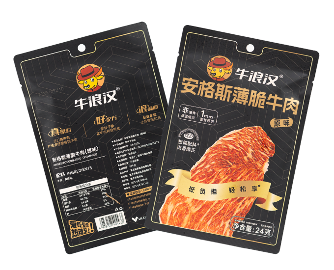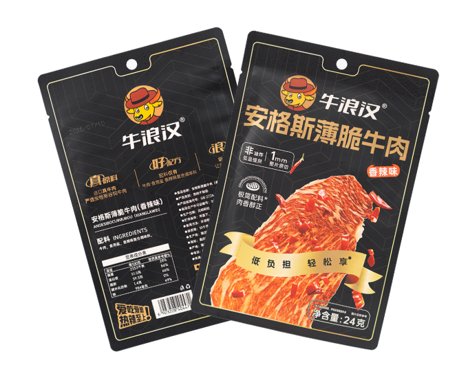 采用创新工艺,打造约1mm厚度的薄脆牛肉,薄如蝉翼,轻脆易化不费牙