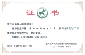 关于牛浪汉 企业简介 发展历程 品牌文化 IP形象 非遗传承 企业荣誉 企业简介 发展历程 品牌文化 IP形象 非遗传承 企业荣誉 Corporate honors 企业荣誉 重庆莉莱食品有限公司凭借卓越的经营与贡献,先后荣膺南岸区“消费者信得过企业”、南岸区“优秀民营企业”、重庆市“食品安全示范单位”、重庆市著名商标、重庆市“专精特新”企业、重庆市“安全生产标准化二级企业”、重庆市农产品加工业百强领军企业、重庆市农业产业化市级龙头企业、重庆市消费品工业重点培育品牌示范试点企业、重庆市社会福利企业联合会优秀会员单位、重庆市五一劳动奖状、重庆市先进基层党组织、全国模范职工之家、全国五一巾帼标兵岗等多项殊誉。